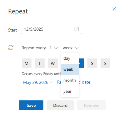 And you can choose specific days: